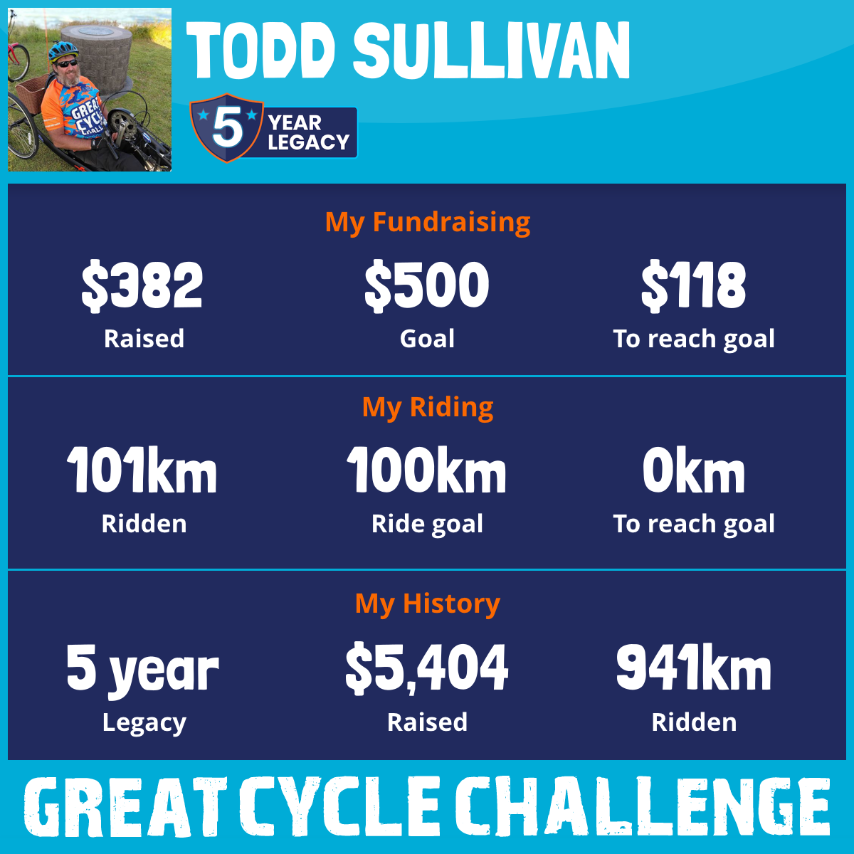101 km Ridden$382 Raised2025