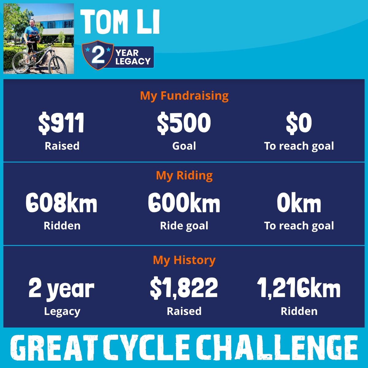 I’ve set myself a goal of 300km, but I’ll be pushing to go further and break past that target. Every kilometre I ride is part of this shared effort to support kids who are facing cancer.