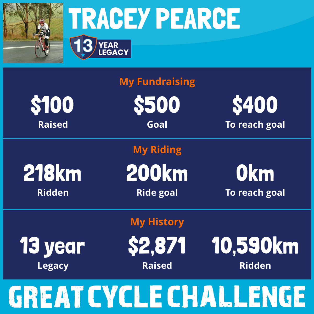 And so I am riding and raising funds to support the Children's Medical Research Institute to continue their work into the prevention, diagnosis, treatment and finding a cure for childhood cancer.