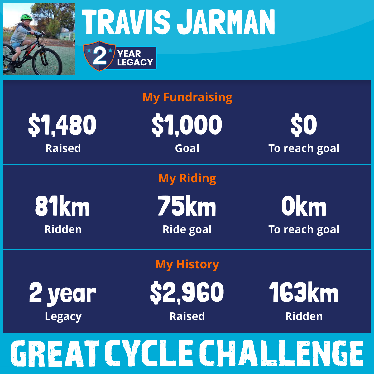 81 km Ridden$1,480 Raised2026