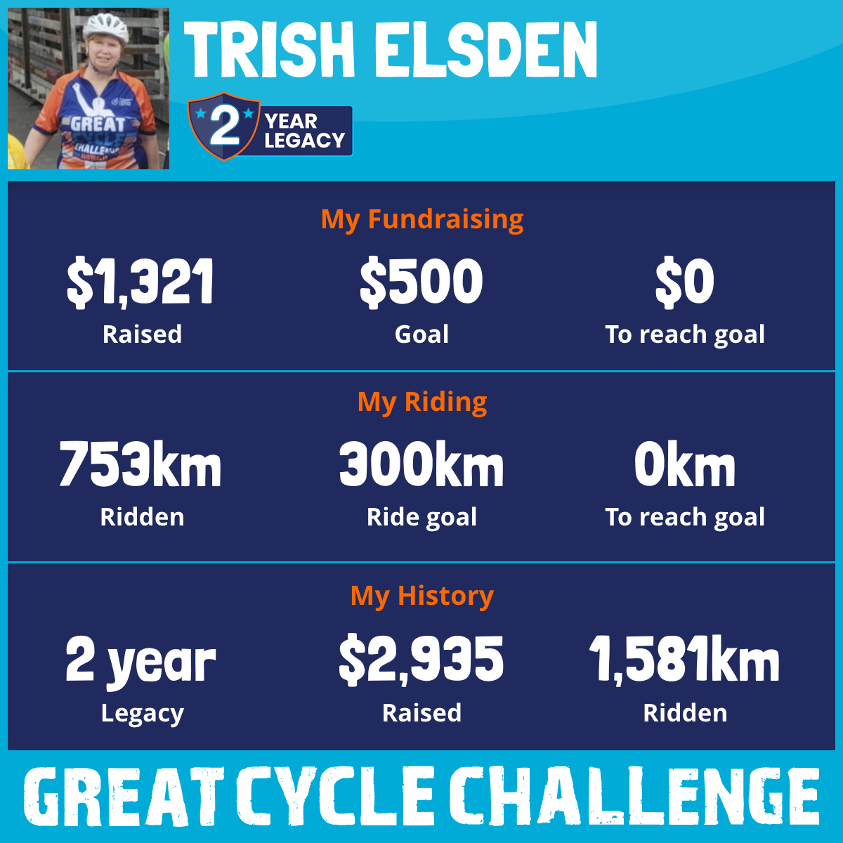 753 km Ridden$1,321 Raised2026