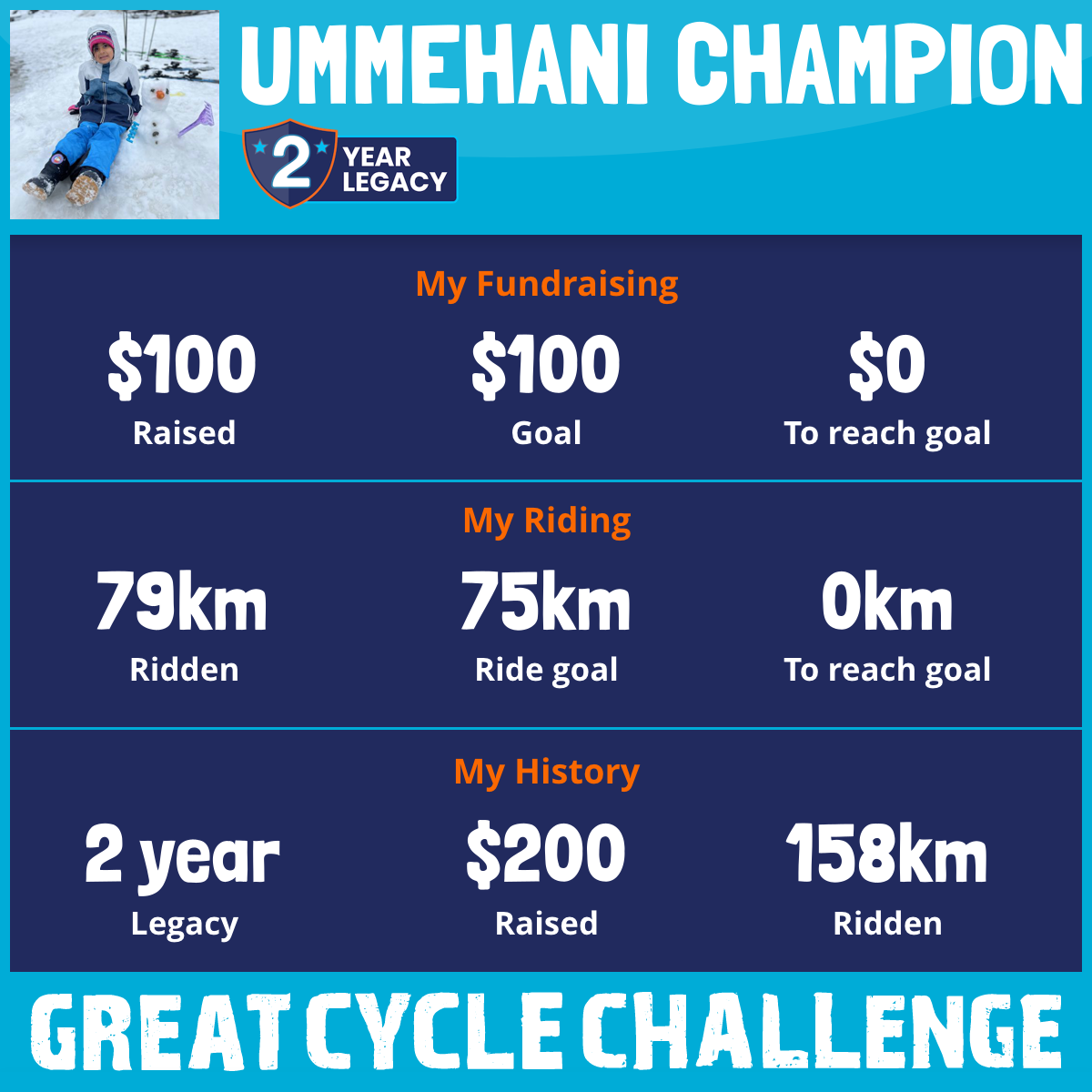 And so I am riding and raising funds to support the Children's Medical Research Institute to continue their work into the prevention, diagnosis, treatment and finding a cure for childhood cancer.