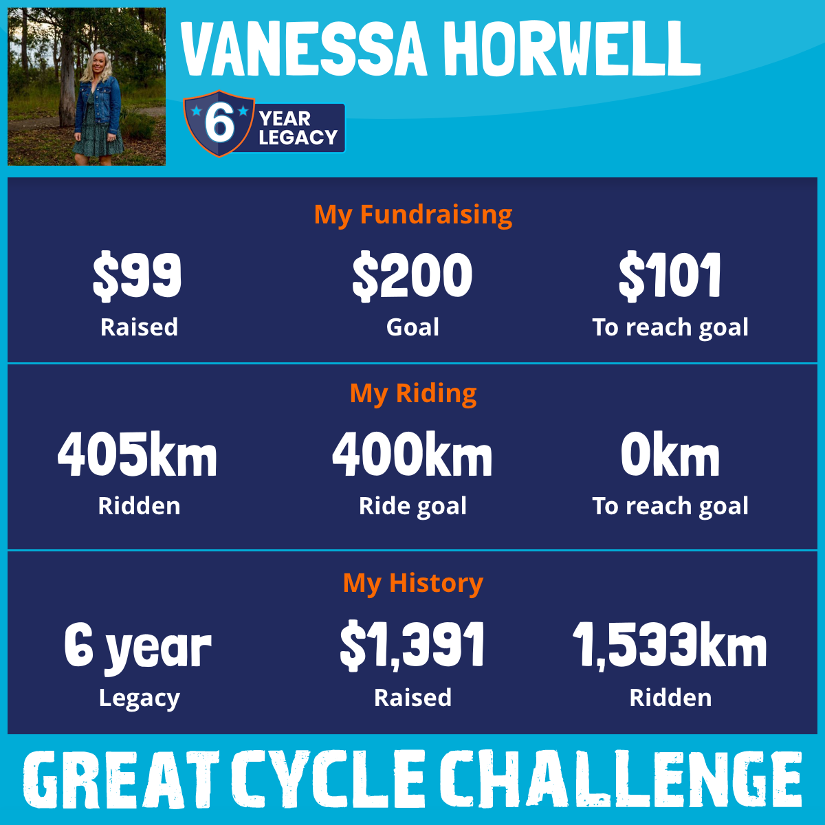 405 km Ridden$99 Raised2026
