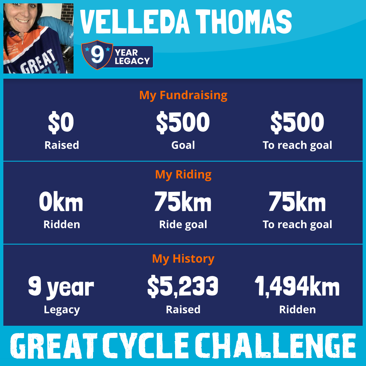And so I am riding and raising funds to support the Children's Medical Research Institute to continue their work into the prevention, diagnosis, treatment and finding a cure for childhood cancer.