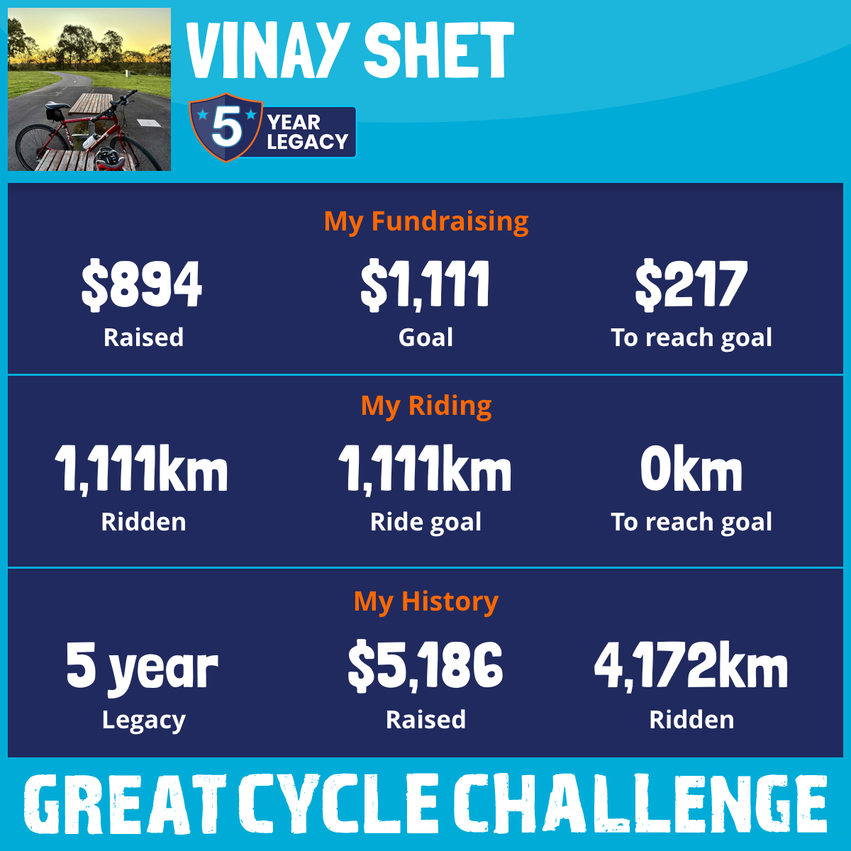 1,111 km Ridden$894 Raised2026
