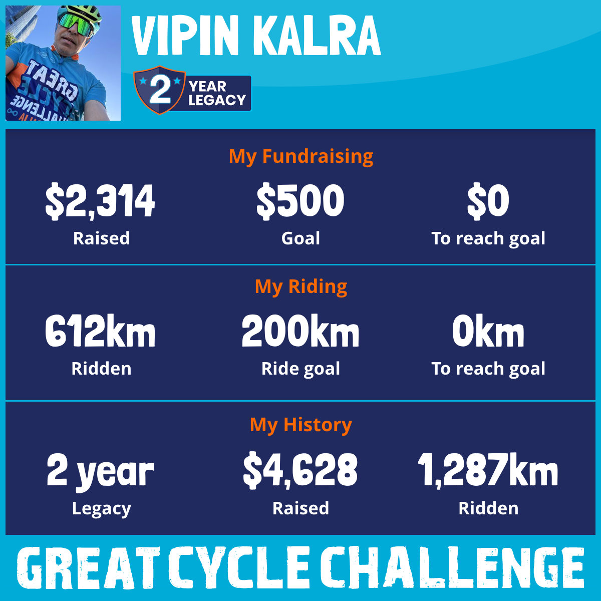 612 km Ridden$2,314 Raised2026