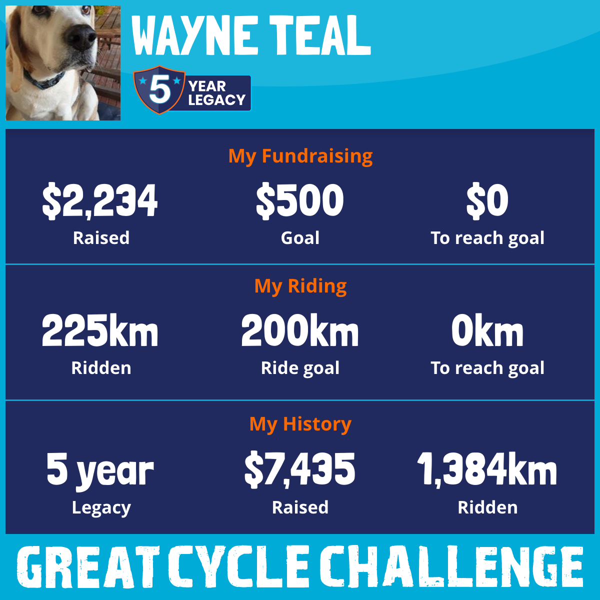 I just raised $2,000 to fight kids' cancer and achieved LEGEND LEVEL in the challenge! Thank you so much for your support.
