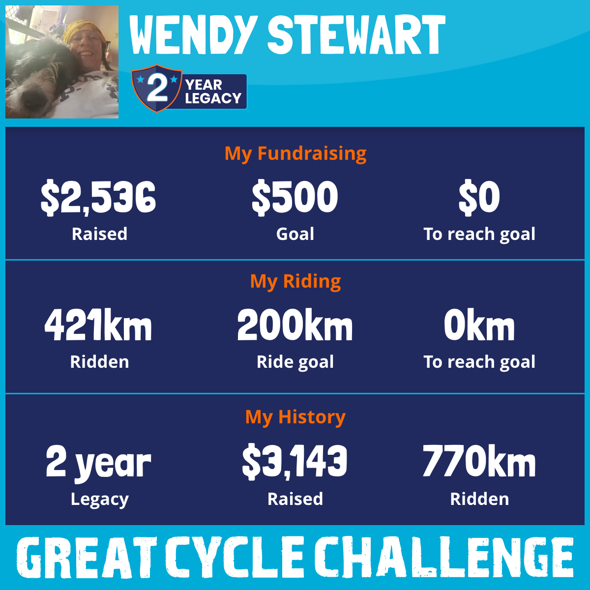 421 km Ridden$2,536 Raised2026