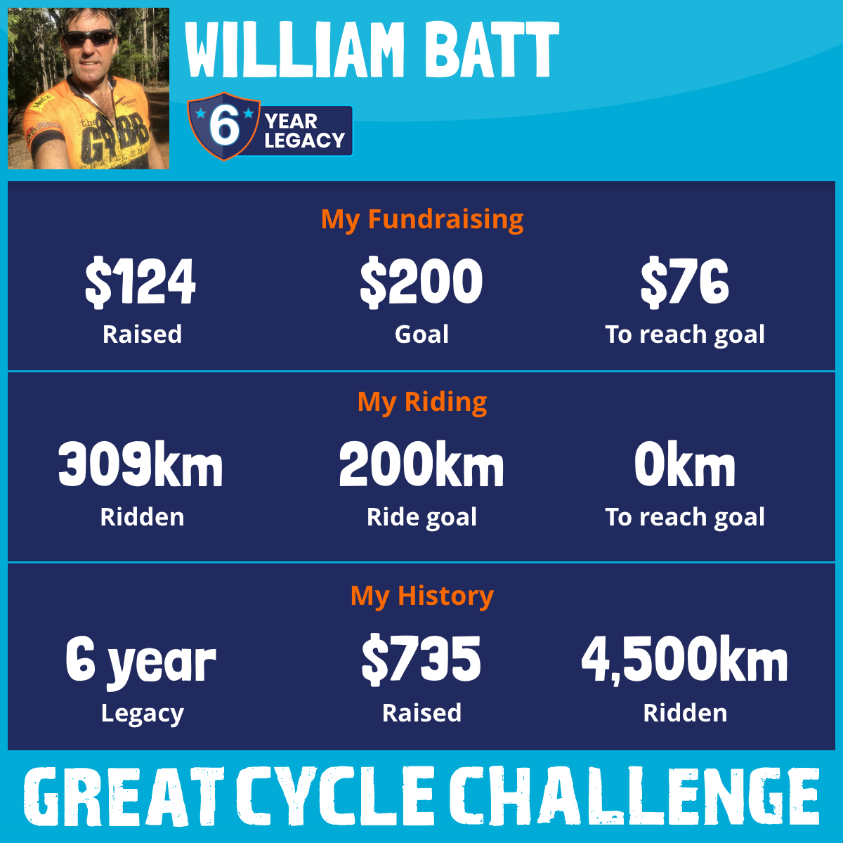 309 km Ridden$124 Raised2026