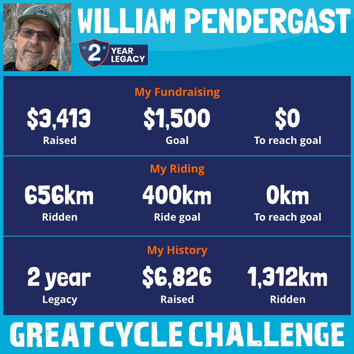 656 km Ridden$3,413 Raised2026