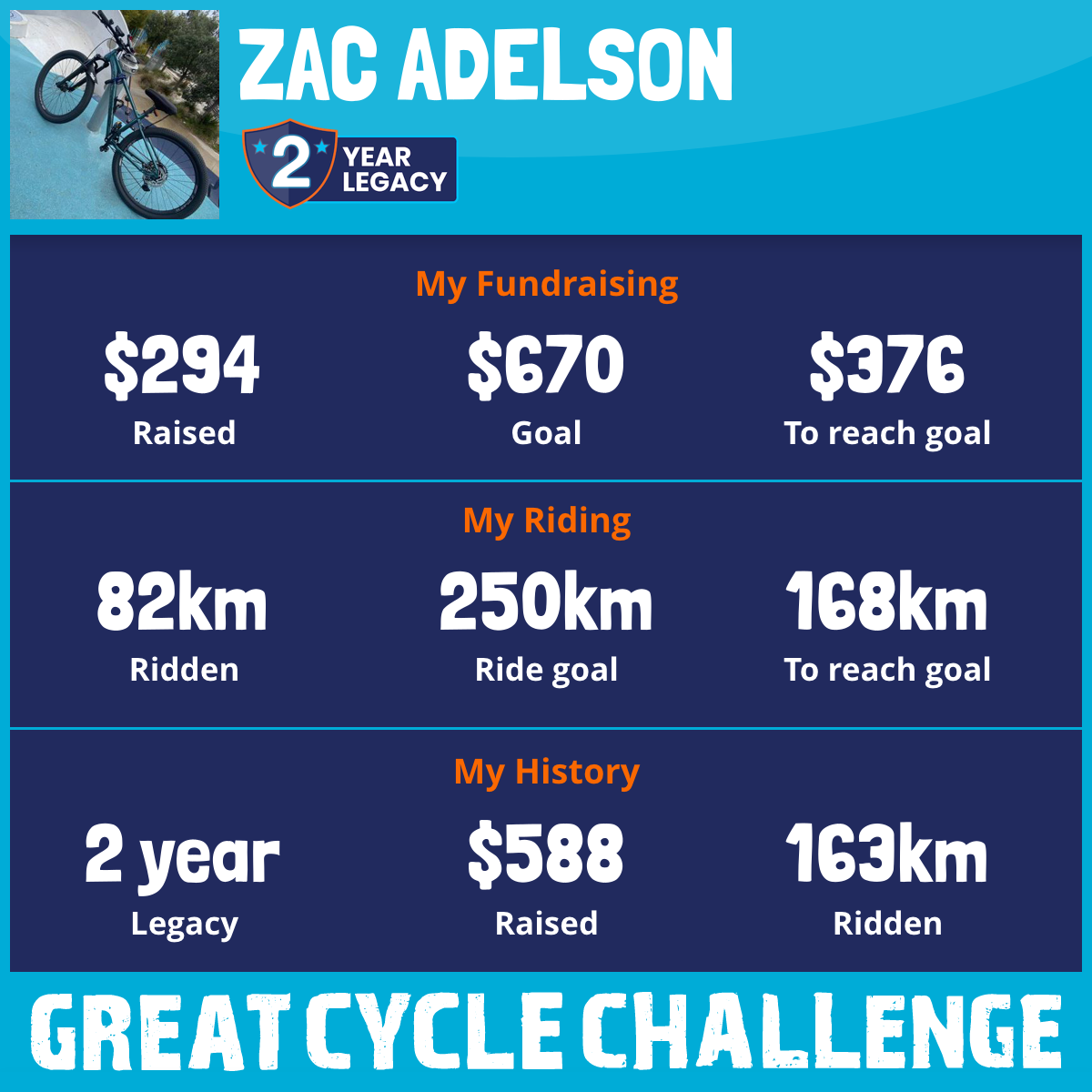 82 km Ridden$294 Raised2026
