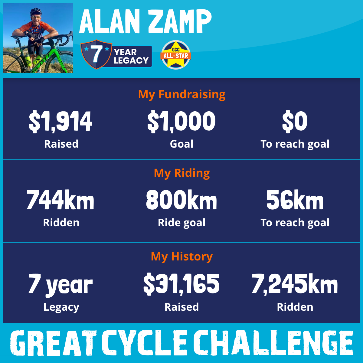744 km Ridden$1,914 Raised2025