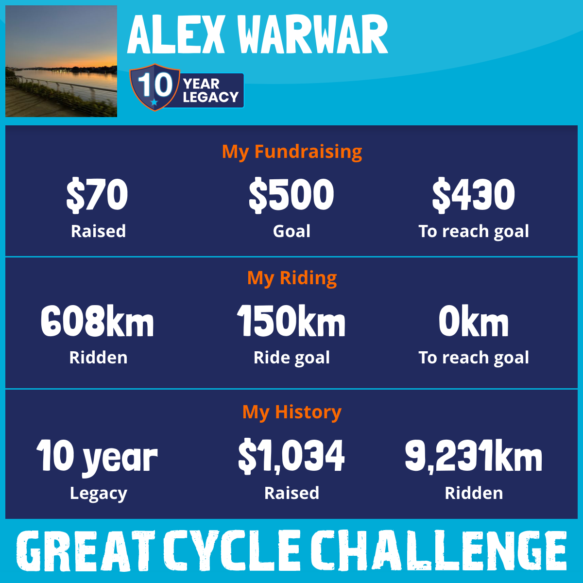 608 km Ridden$70 Raised2026