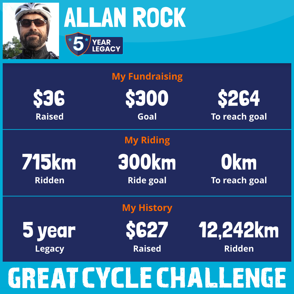 2,187 km Ridden$20 Raised2023