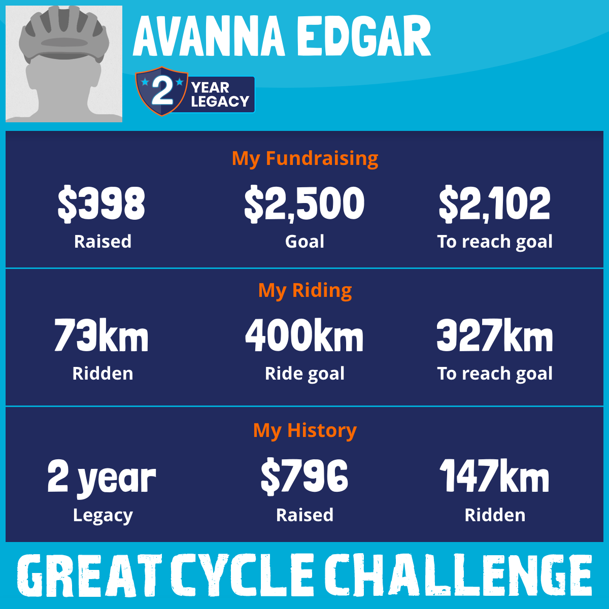 73 km Ridden$398 Raised2026