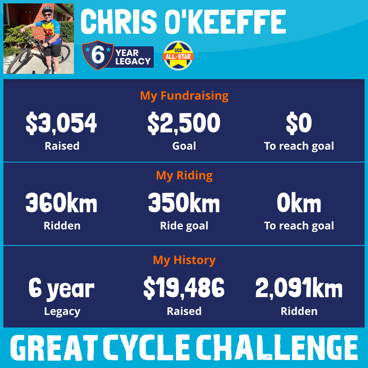 360 km Ridden$3,054 Raised2025