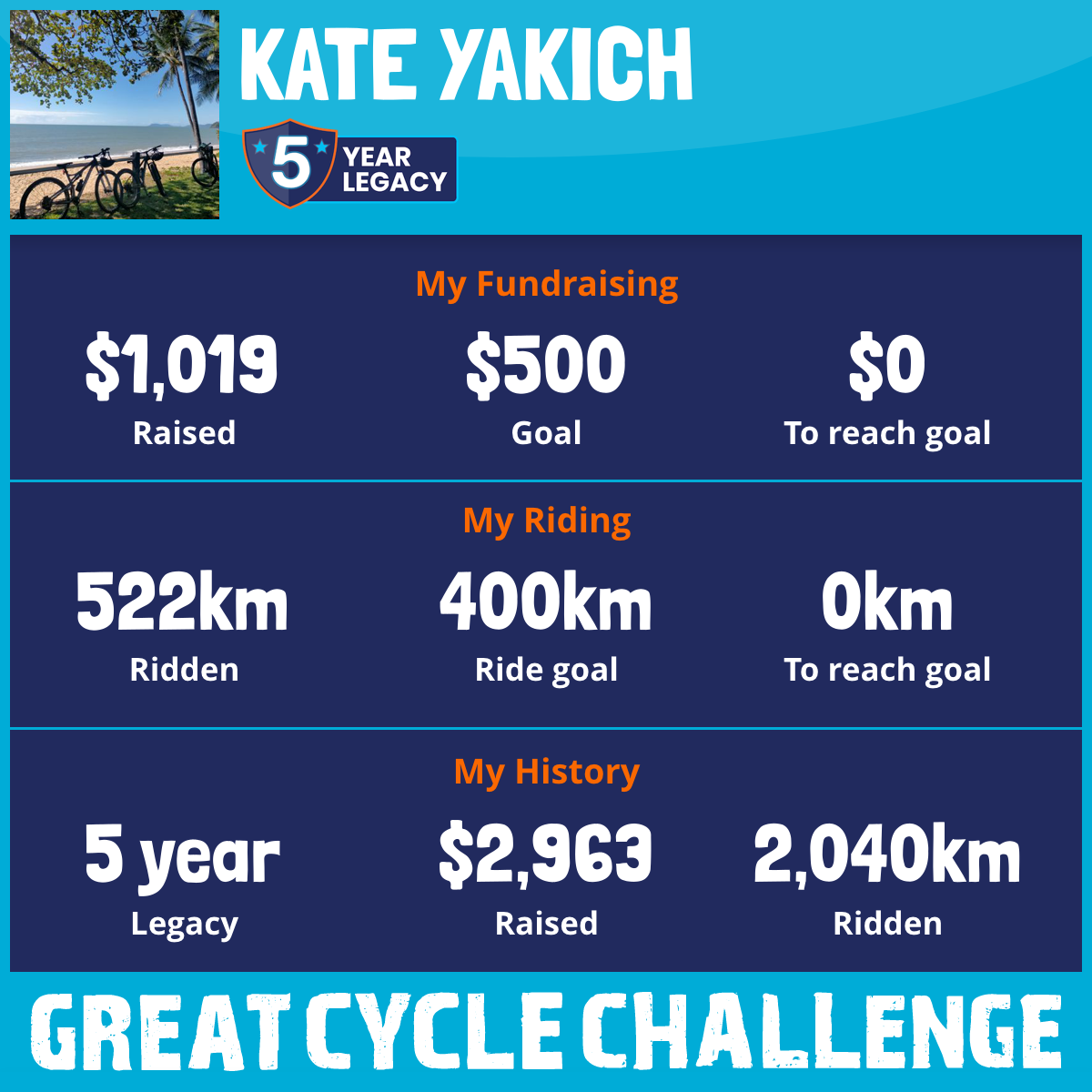 522 km Ridden$1,019 Raised2026