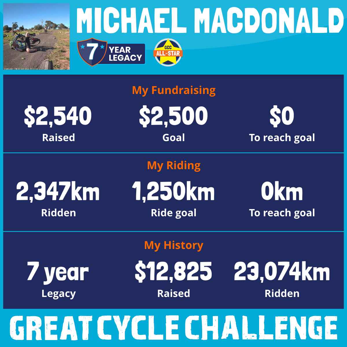 And so I am riding and raising funds to support the Children's Medical Research Institute to continue their work into the prevention, diagnosis, treatment and finding a cure for childhood cancer.