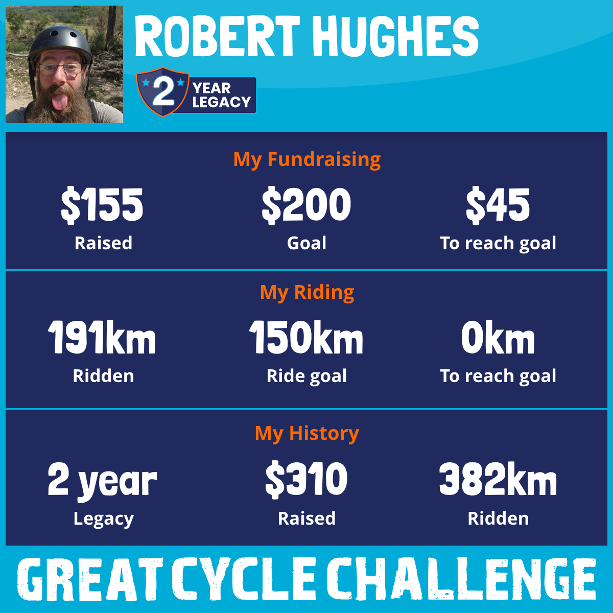 191 km Ridden$155 Raised2026
