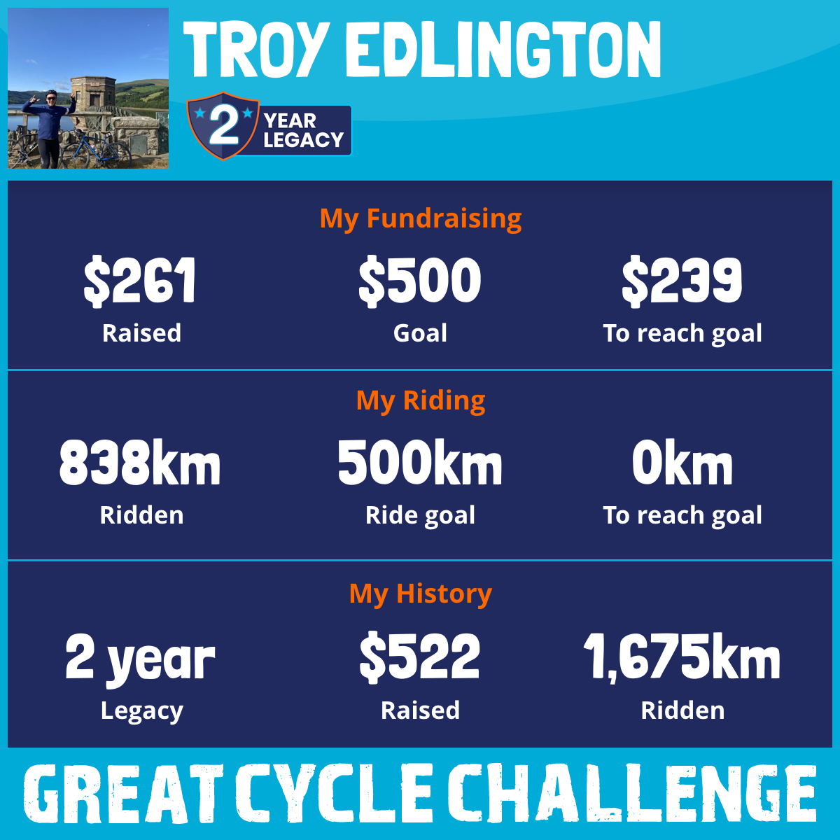 838 km Ridden$261 Raised2026
